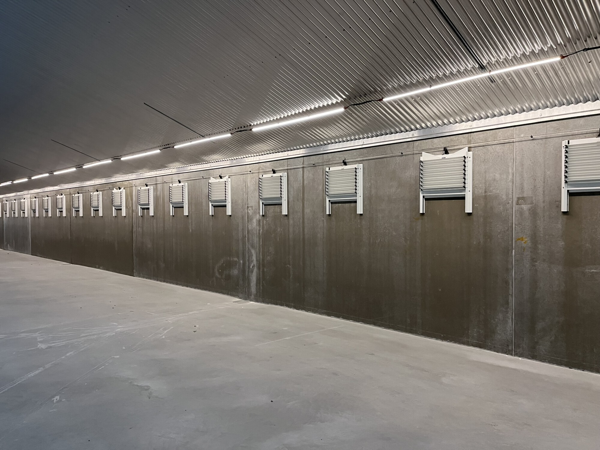 - Light traps (LTR-VERZ) have been placed in the end wall to prevent unwanted light influences from the fans.